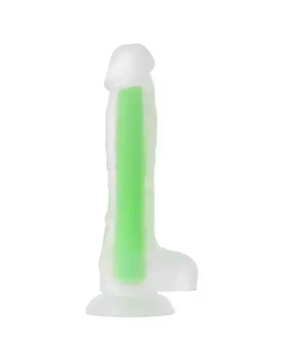 Hermoso dildo, realista que cuenta con una ventosa el cual te permitirá tener las manos libres mientras él se adhiere a cualquier superficie lisa, donde podrás interactuar con él, y cuando lo dejas en la oscuridad te sorprenderá con su auténtico brillo.